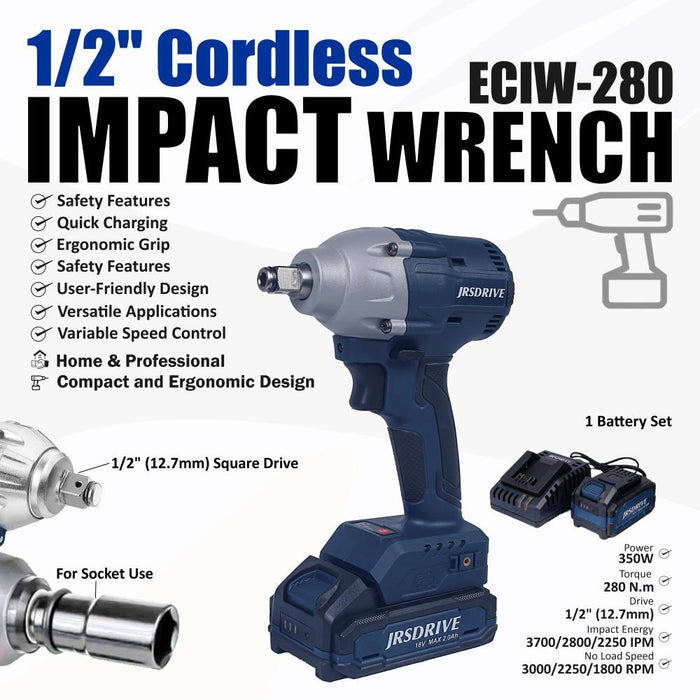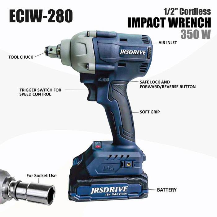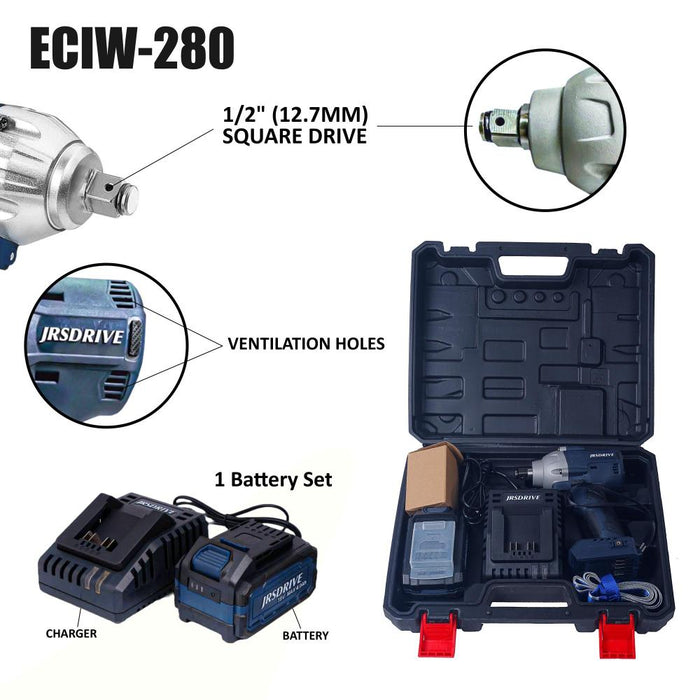 JRSDRIVE 1/2" Cordless Impact Wrench-280Nm, ECIW-280