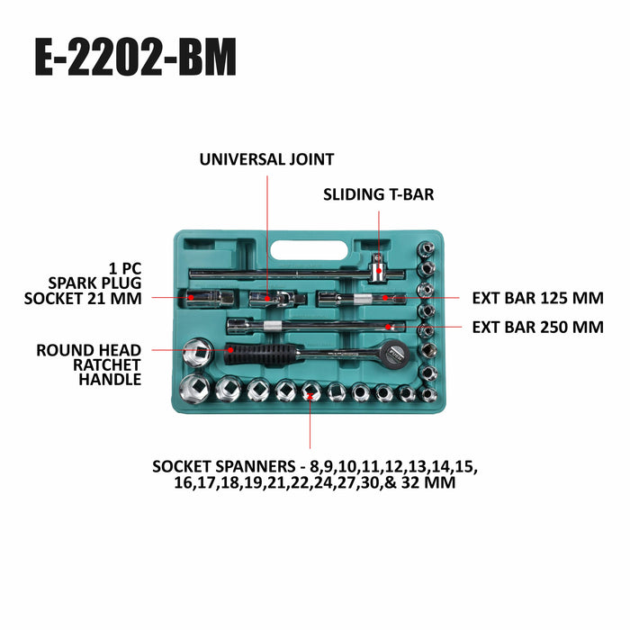 Eastman 1/2 SQ. 24 Pcs New Socket Set -E-2202BM