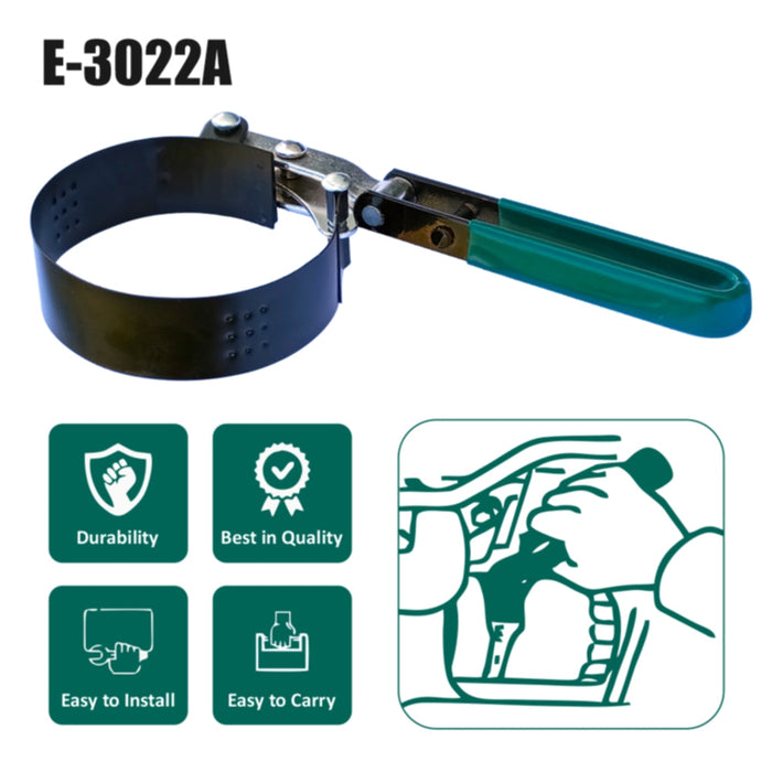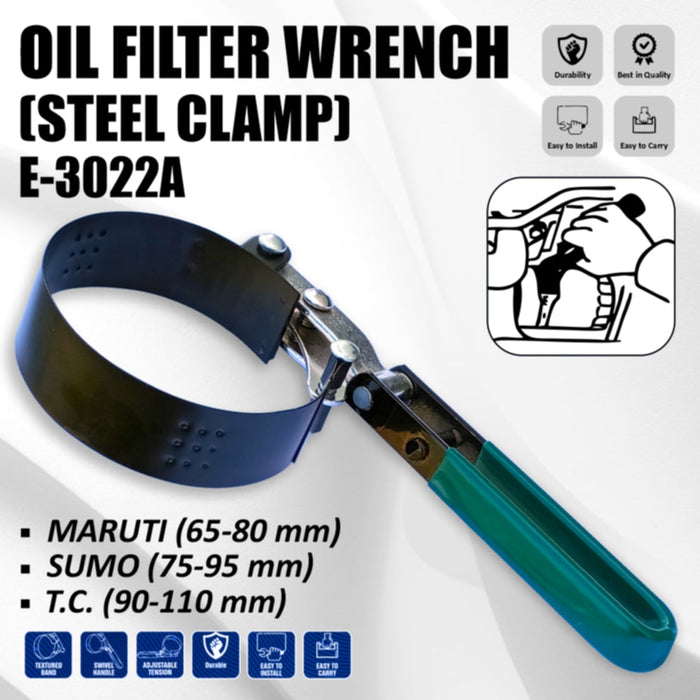 Introducing the Eastman Oil Filter Wrench (Steel Clamp) E3022, a versatile tool suitable for Maruti, Sumo, and T.C type vehicles. With a ring range of 65-110mm, this wrench can effectively remove and tighten oil filters, providing professional results and saving you time and effort.